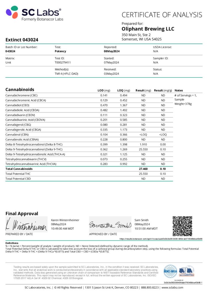 Oliphant Brewing THC Infused Lemonade